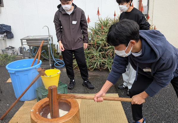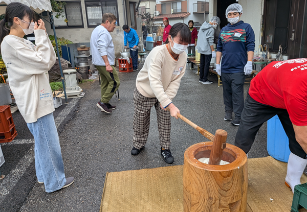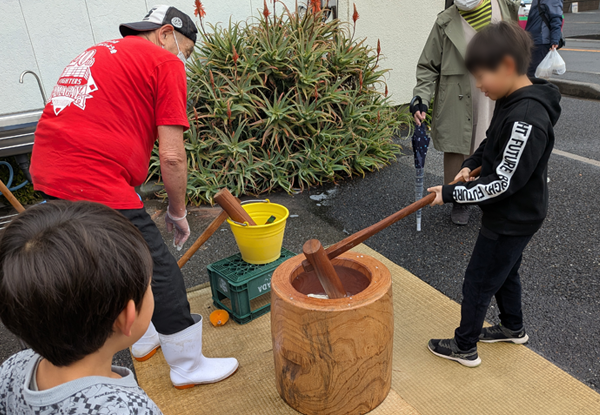 昨晩の雨で、当日はどうなるかと心配をしていましたが、雨の影響は全くなく餅つき大会を開催できました。
